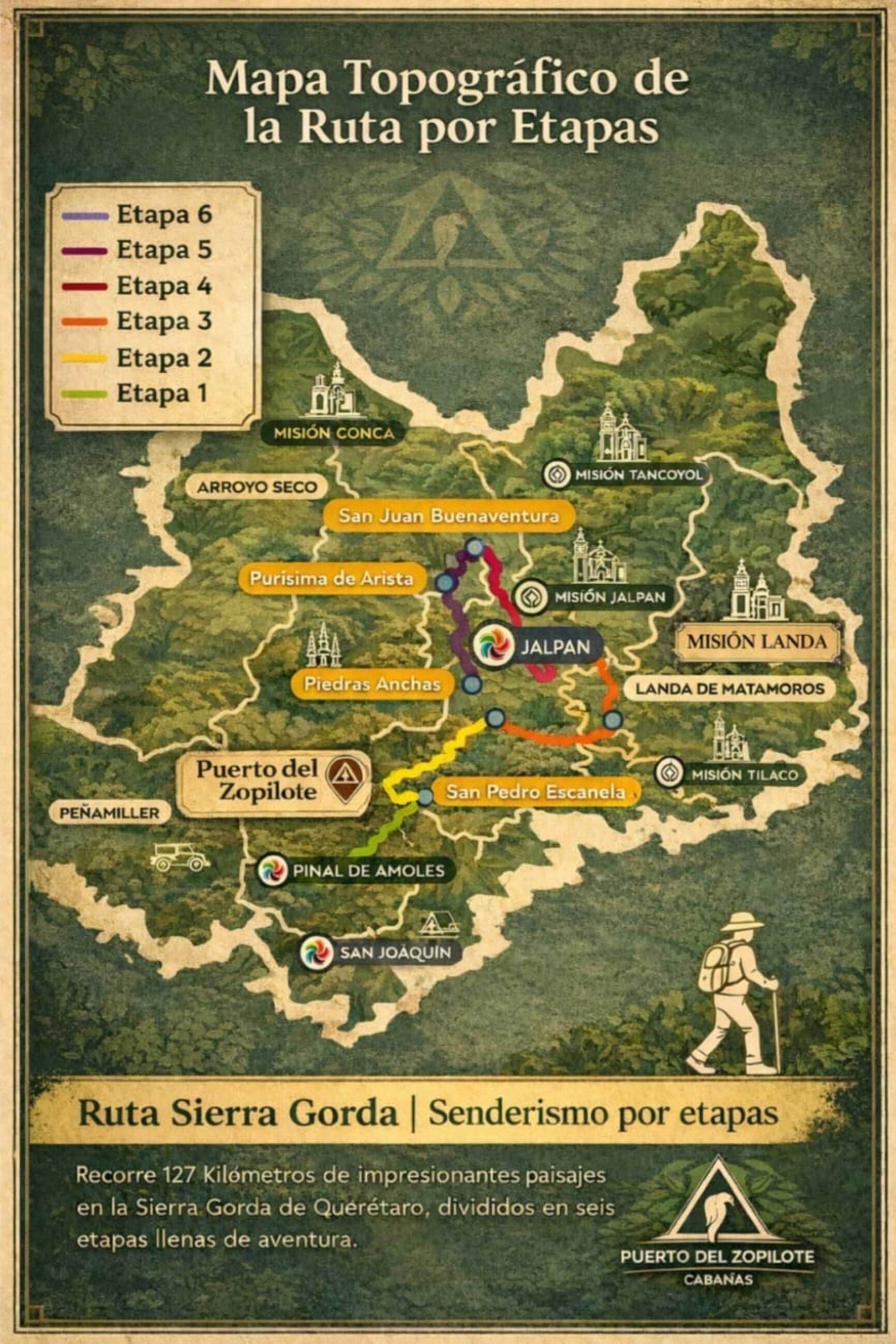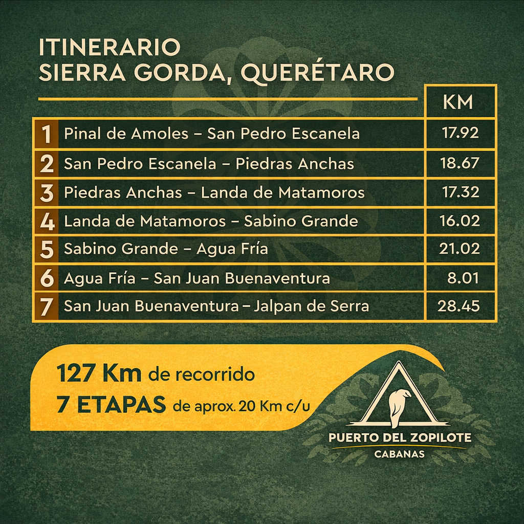El recorrido abarca 127 kilómetros distribuidos en 7 etapas, atravesando cuatro municipios de la Sierra Gorda:
